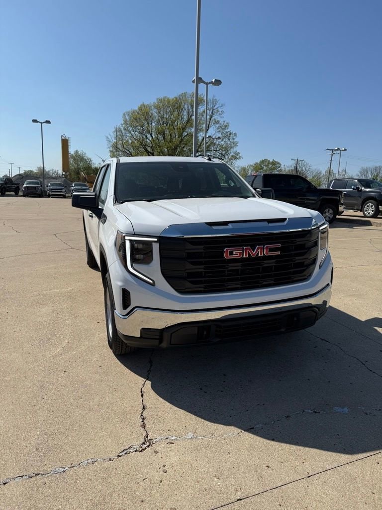 Summit White 2025 GMC Sierra 1500 Pro 4WD 8-Speed Automatic 2.7L I4 Turbocharged DOHC 16V LEV3-SULEV30 310hp 8-Speed Automatic, 4WD, Black Cloth.