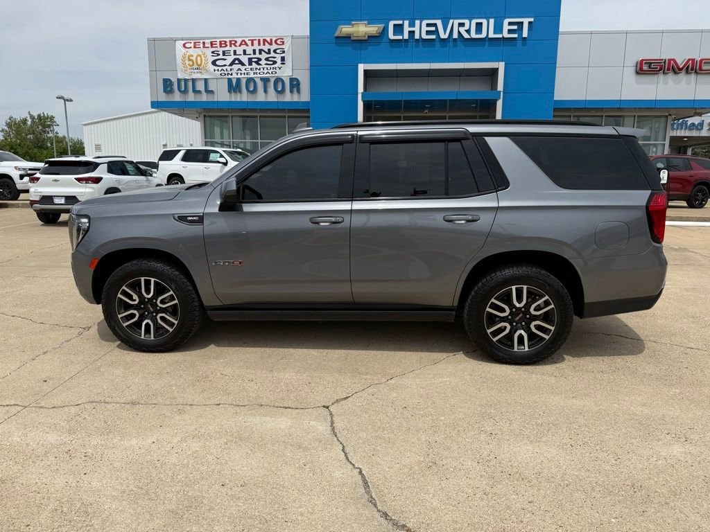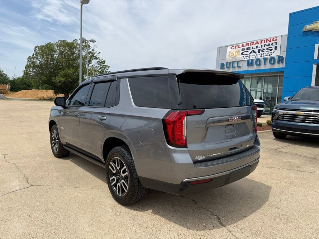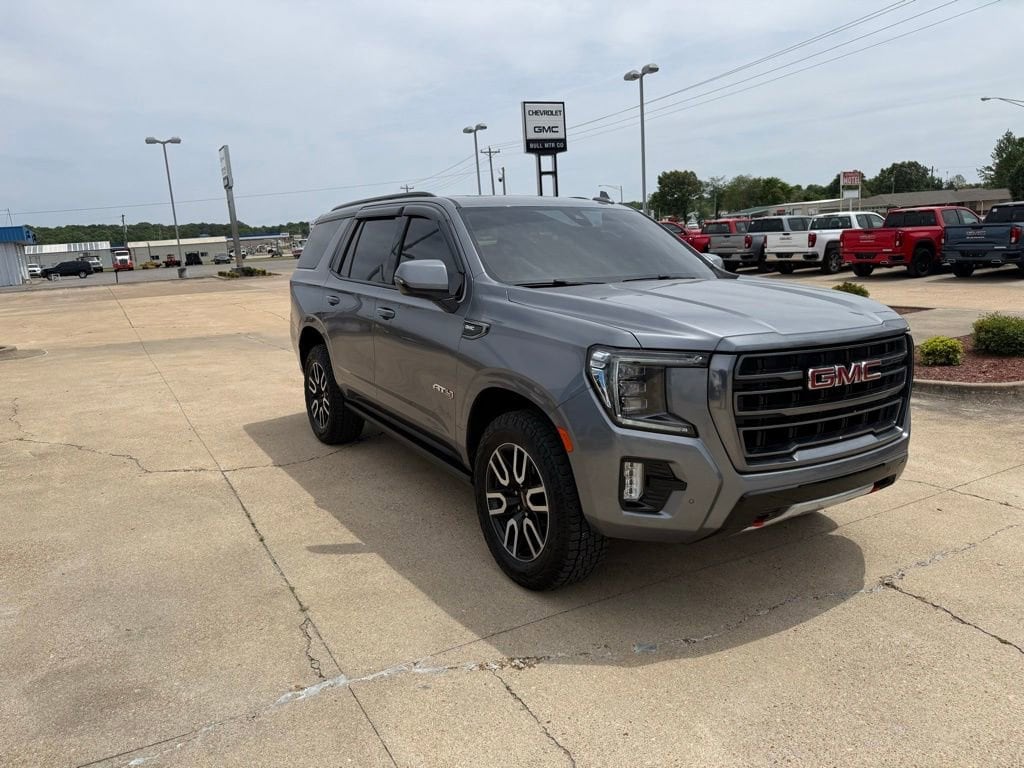 Satin Steel Metallic 2022 GMC Yukon AT4 4WD 10-Speed Automatic with Overdrive EcoTec3 5.3L V8 4WD, 2 Presets For Outside Rearview Mirrors, 3 Years of GMC Connected Services, 3.23 Rear Axle Ratio, 3rd Row 60/40 Power-Folding Split-Bench Seat, 3rd row seats: split-bench, 4-Wheel Disc Brakes, 9 Speakers, ABS brakes, Adaptive suspension, Air Conditioning, Alloy wheels, AM/FM radio: SiriusXM with 360L, AM/FM Stereo, Apple CarPlay/Android Auto, Auto High-beam Headlights, Auto-dimming door mirrors, Auto-dimming Rear-View mirror, Automatic Emergency Braking, Automatic Stop/Start, Automatic temperature control, Black Roof-Mounted Luggage Rack Side Rails, Bose 9-Speaker Stereo Audio System Feature, Brake assist, Bright Front & Rear Door Sill Plates, Compass, Delay-off headlights, Dual front impact airbags, Dual front side impact airbags, Dual-Pane Panoramic Power Sunroof, Electronic Stability Control, Emergency communication system: OnStar and GMC Connected Services capable, Following Distance Indicator, Forward Collision Alert, Four wheel independent suspension, Front & Rear Park Assist, Front anti-roll bar, Front Bucket Seats, Front Center Armrest, Front dual zone A/C, Front fog lights, Front High-Approach Angle Fascia, Front Pedestrian Braking, Front reading lights, Fully automatic headlights, Garage door transmitter, Hands-Free Power Programmable Rear Liftgate, Heated & Ventilated Driver & Front Passenger Seats, Heated 2nd Row Outboard Position Seats, Heated door mirrors, Heated Driver & Front Passenger Seats, Heated front seats, Heated rear seats, Heated Steering Wheel, Heated steering wheel, Heavy-Duty Air Filter, Hill Descent Control, Illuminated entry, Inside Rear-View Auto-Dimming Mirror, IntelliBeam Automatic High Beam On/Off, Lane Change Alert w/Side Blind Zone Alert, Lane Keep Assist w/Lane Departure Warning, Leather steering wheel, Low tire pressure warning, Magnetic Ride Control Suspension, Memory seat, Navigation System, Occupant sensing airbag, Outside Heated Power-Adjustable Mirrors, Outside temperature display, Overhead airbag, Panic alarm, Perforated Leather Seating Surfaces, Power door mirrors, Power driver seat, Power Liftgate, Power Release 2nd Row 60/40 Split-Folding Bench Seat, Power Release 2nd Row Bucket Seats, Power steering, Power Tilt & Telescopic Steering Column, Power windows, Power-Retractable Assist Steps, Preferred Equipment Group 4SB, Rain sensing wipers, Rear air conditioning, Rear anti-roll bar, Rear Cross Traffic Alert, Rear seat center armrest, Rear window defroster, Rear window wiper, Red Horizontal-Mounted Recovery Hooks, Remote keyless entry, Roof rack: rails only, Safety Alert Seat, Security system, SiriusXM w/360L, Speed control, Speed-sensing steering, Split folding rear seat, Spoiler, Start/Stop System Disable Button, Steering wheel memory, Steering wheel mounted audio controls, Telescoping steering wheel, Tilt steering wheel, Traction control, Turn signal indicator mirrors, Universal Home Remote, Variably intermittent wipers, Ventilated front seats, Wheels: 20 x 9 6-Spoke Machined Aluminum, Wireless Charging.