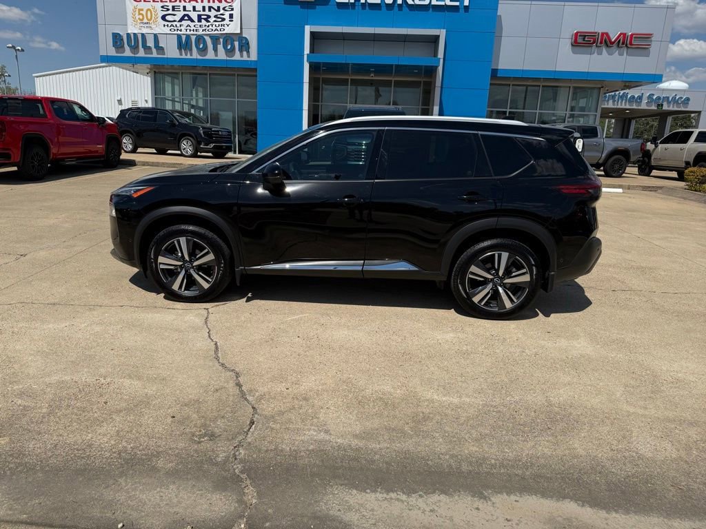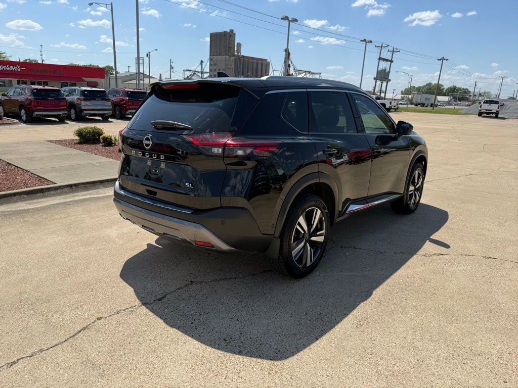 Super Black 2023 Nissan Rogue SL FWD CVT with Xtronic 1.5L I3 Turbocharged DOHC 12V LEV3-ULEV50 201hp 19 Aluminum Alloy Wheels, 4-Wheel Disc Brakes, 5.604 Axle Ratio, 6 Speakers, ABS brakes, Air Conditioning, Alloy wheels, AM/FM Radio, AM/FM radio: SiriusXM, Auto High-beam Headlights, Auto-dimming Rear-View mirror, Automatic temperature control, Black Splash Guards (Set of 4), Bose Premium Audio System, Brake assist, Bumpers: body-color, Chrome Rear Bumper Protector, Delay-off headlights, Driver door bin, Driver vanity mirror, Dual front impact airbags, Dual front side impact airbags, Electronic Stability Control, Emergency communication system: NissanConnect Services, First Aid Kit, Floor Mats w/2-Piece Cargo Area Protector, Four wheel independent suspension, Front anti-roll bar, Front Bucket Seats, Front Center Armrest, Front dual zone A/C, Front reading lights, Front, Side & Rear Sonar, Fully automatic headlights, Heated door mirrors, Heated Front Bucket Seats, Heated front seats, Heated steering wheel, Illuminated entry, Knee airbag, Leather steering wheel, Leather-Appointed Seat Trim, Low tire pressure warning, Memory seat, Motion Activated Power Liftgate, NissanConnect featuring Apple CarPlay and Android Auto, Occupant sensing airbag, Outside temperature display, Overhead airbag, Overhead console, Panic alarm, Passenger door bin, Passenger vanity mirror, Power door mirrors, Power driver seat, Power Liftgate, Power moonroof, Power passenger seat, Power steering, Power windows, ProPILOT Assist w/Navi-link, Radio data system, Radio: AM/FM NissanConnect w/Navigation, Rear anti-roll bar, Rear Door Sunshades, Rear Parking Sensors, Rear reading lights, Rear seat center armrest, Rear side impact airbag, Rear window defroster, Rear window wiper, Remote keyless entry, Security system, SL Premium Package, Speed control, Speed-Sensitive Wipers, Split folding rear seat, Spoiler, Steering wheel mounted audio controls, Tachometer, Telescoping steering wheel, Tilt steering wheel, Traction control, Traffic Sign Recognition, Tri-Zone HVAC, Trip computer, Turn signal indicator mirrors, Variably intermittent wipers.